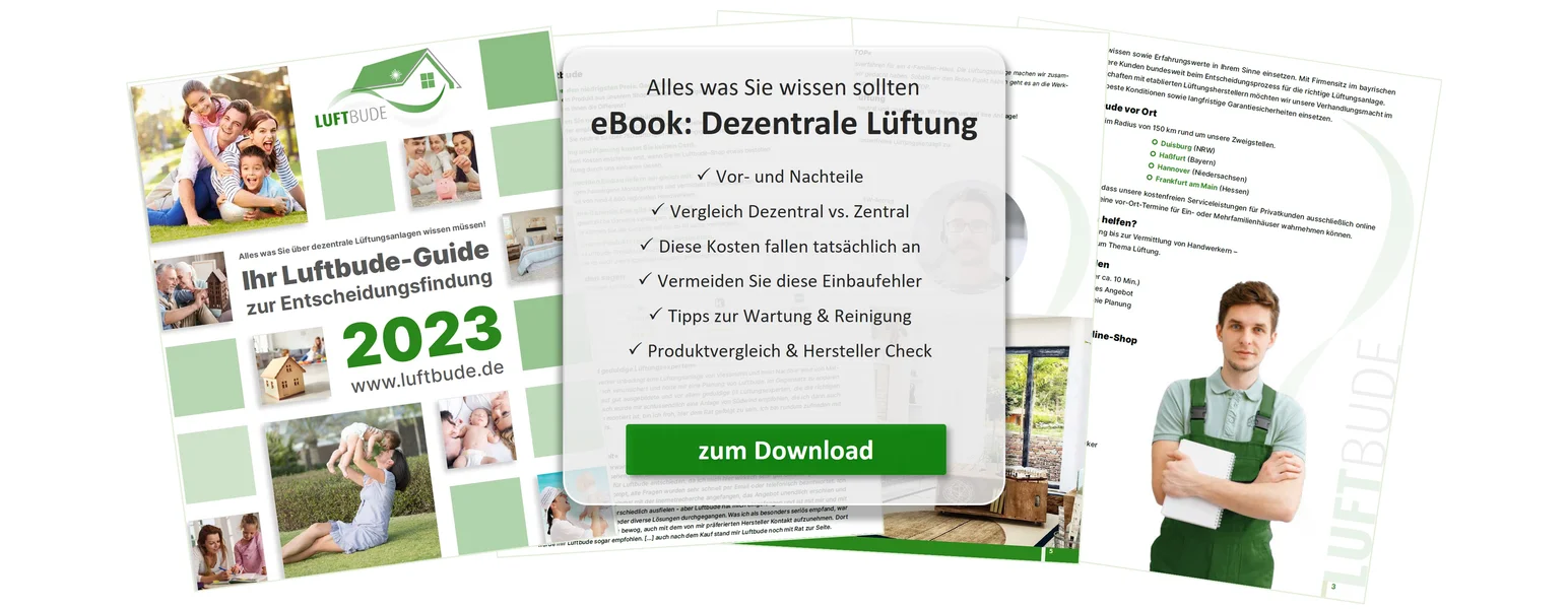 Von der Planung bis zum Einbau einer dezentralen Lüftung gibt es einige wichtige Schritte zu beachten. Daher haben wir Ihnen in unserer Ratgeberserie rund um dezentrale Lüftungsanlagen alle wichtigen Informationen und Hinweise zu Planung, Kosten, Montage, Schallschutz und Wartung zusammengestellt. So können Sie sich weiterführend und umfassend informieren und so die ideale dezentrale Lüftungslösung für Ihr Gebäude finden.