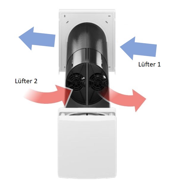 Der iV Twin+ schafft es durch zwei Lüftereinheiten, gleichzeitig Zu- und Abluft zu bedienen. Dadurch ist auch mit einem Gerät eine dauerhafte Druckneutralität vorhanden. Somit kann der Lüfter auch als Einzelraumlüftungsgerät Betrieben werden (z.B. in einem Bad oder einer Küche).