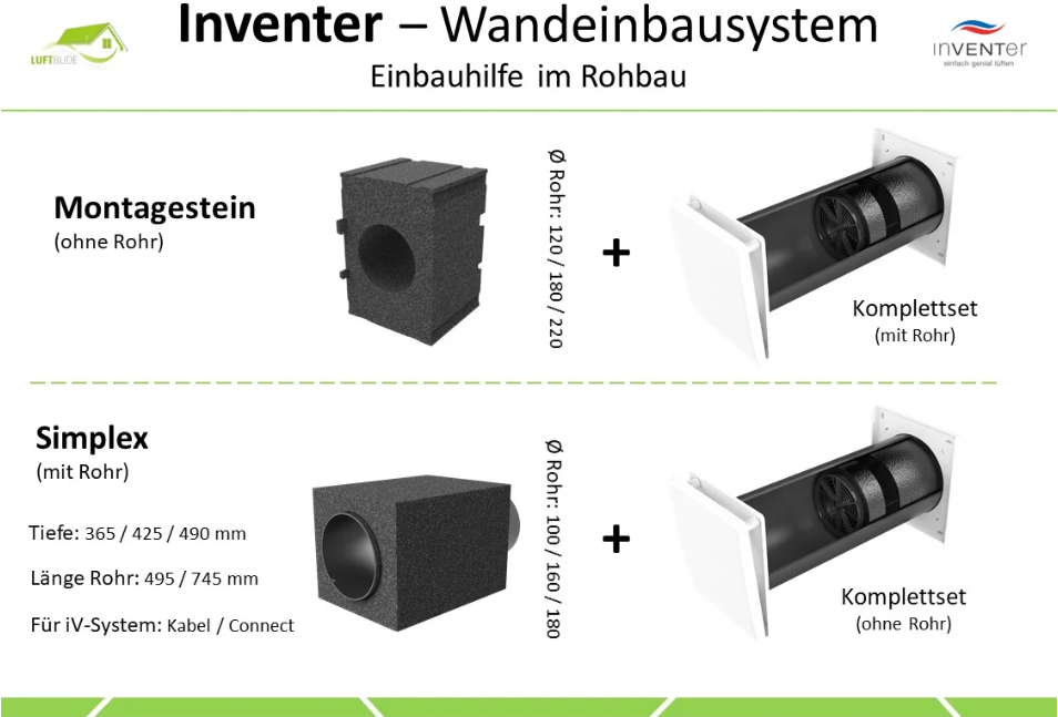 Das Fertigstellungsset wird benötigt, wenn das Vorhergegangene Vorbereitungsset bestellt wurde und die Wandeinbauhülse, inklusive Außenhaube bereits montiert sind. So bekommt man in diesem Set alle Restlichen Bestandteile des Lüftungsgerätes: Einschub Wärmetauscher und Innenblende Flair.