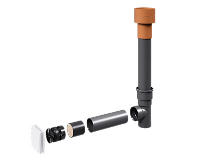 Grundsätzlich ist das System für jede Einbausituation geeignet. Zunächst wird hier die horizontale Wanddurchführung realisiert. Im Dachstuhl findet man hierfür häufig Trockenbau- oder Holzständerwände vor, die den Durchbruch vereinfachen. Der Außenluftdurchlass im Dach sollte von einem Dachdecker bereits eingeplant werden. Statt einem Ziegel wird hier wie beschrieben eine Pfanne montiert, die den vertikalen Durchgang des Lüftungskanals ermöglicht.