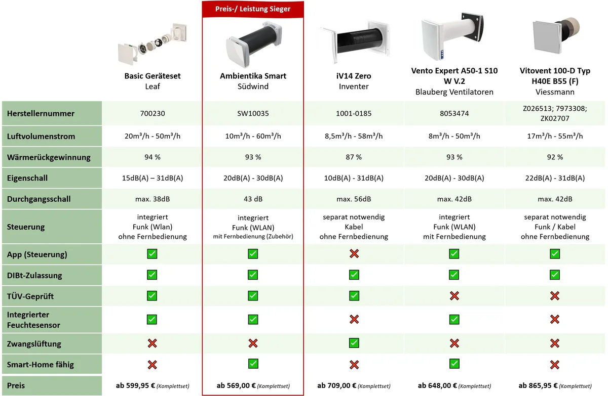 Leaf 1 Tree – Effizientes Lüften für optimales RaumklimaErleben Sie konstante Frischluftzufuhr mit dem Leaf 1 Tree – für ein gesundes und behagliches Zuhause.Das Leaf 1 Tree von Leaf Ventilation ist ein innovatives dezentrales Lüftungsgerät, das für eine kontinuierliche und energieeffiziente Frischluftzufuhr in Ihren Räumen sorgt. Es eliminiert verbrauchte Luft, reduziert Feuchtigkeit und hilft, Schimmelbildung vorzubeugen, ohne Wärmeverluste durch Fensterlüftung. Dieses flexible System ist in verschiedenen Ausführungen, vom Komplettset bis zu einzelnen Komponenten, erhältlich, um perfekt auf Ihre Bedürfnisse zugeschnitten zu sein.Ihre Vorteile im Überblick:Optimale Luftqualität: Sorgen Sie für eine konstante Zufuhr von frischer, gefilterter Luft, die das Wohlbefinden steigert und Allergene reduziert.Energieeffiziente Lüftung: Das dezentrale System ermöglicht gezieltes Lüften mit minimalem Wärmeverlust, was Ihre Heizkosten senkt und die Umwelt schont.Einfache Installation & Flexibilität: Dank der dezentralen Bauweise und der Verfügbarkeit als Komplettset oder Einzelkomponenten ist die Installation unkompliziert und anpassbar an unterschiedlichste Raumbedingungen.Feuchtigkeitsregulierung: Effektiver Abtransport von feuchter Luft beugt Schimmelbildung vor und schützt die Bausubstanz Ihrer Immobilie.Flexible SystemkonfigurationDas Leaf 1 Tree ist nicht nur als vollständiges Geräteset erhältlich, sondern auch in spezifischen Modulen wie Innenset, Rohbauset (500 mm und 1000 mm) und Außenset. Diese modulare Bauweise ermöglicht eine präzise Anpassung an Ihre individuellen Bau- oder Renovierungsprojekte.Der direkte Nutzen liegt in der maßgeschneiderten Beschaffung: Sie kaufen nur das, was Sie wirklich benötigen, minimieren Abfall und optimieren Ihr Budget, während Sie gleichzeitig die volle Kontrolle über den Installationsprozess behalten.Intelligente RaumlüftungAls dezentrales Lüftungsgerät sorgt das Leaf 1 Tree für einen gezielten Luftaustausch genau dort, wo er benötigt wird. Es arbeitet unabhängig von zentralen Lüftungssystemen und kann somit flexibel in Einzelräumen oder Wohnungen eingesetzt werden.Dies führt zu einem konstant angenehmen Raumklima, da verbrauchte Luft kontinuierlich durch frische ersetzt wird, ohne dabei wertvolle Wärme zu verlieren. Genießen Sie frische Luft, während Sie gleichzeitig Ihre Energiekosten senken.Technische SpezifikationenAbmessungMaßHinweisRohbauset Länge 1500 mmFlexible InstallationRohbauset Länge 21000 mmAnpassbar an verschiedene WandstärkenEinsatzbereiche & AnwendungsszenarienDas Leaf 1 Tree ist ideal für die Nachrüstung in Bestandsgebäuden oder den Neubau, wo keine zentrale Lüftungsanlage geplant ist. Es eignet sich hervorragend für Einzelräume wie Schlafzimmer, Wohnzimmer oder Büros, in denen eine konstante Frischluftzufuhr ohne großen Installationsaufwand gewünscht ist.Nutzen Sie die verschiedenen Sets – vom Rohbauset für die Bauphase bis zum Innenset für die Fertigstellung – um Ihr Lüftungssystem präzise auf Ihre Wohnbedürfnisse abzustimmen und so ein gesundes Raumklima effizient zu gewährleisten.Hersteller & QualitätDas Leaf 1 Tree wird von Leaf Ventilation entwickelt und gefertigt, einem Unternehmen, das für innovative und qualitativ hochwertige Lüftungslösungen steht. Leaf Ventilation legt Wert auf nachhaltige Produktion und zuverlässige Produkte, die den Anforderungen an moderne Raumlüftung gerecht werden.Sichern Sie sich jetzt das Leaf 1 Tree und verwandeln Sie Ihr Zuhause in eine Oase der frischen Luft und des Wohlbefindens!Entdecken Sie die vielfältigen Konfigurationsmöglichkeiten und finden Sie die perfekte Lösung für Ihre individuellen Anforderungen. Unser Expertenteam berät Sie gerne bei der Auswahl.