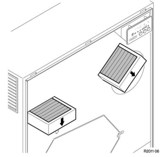 Um die dauerhafte und ordnungsgemäße Funktion des Ab- und Zuluftbetriebes zu gewährleisten, müssen die integrierten Filter regelmäßig getauscht oder gereinigt werden. Sie werden dafür von der Filterwechselanzeige erinnert. Die Reinigung der Filter ist nur bei leichter Verschmutzung zulässig, andernfalls müssen sie ausgetauscht werden. Ziehen Sie dazu die Frontabdeckung aus den Haltebolzen und nehmen Sie die Abdeckung nach oben hin ab. Nun können Sie die Filter reinigen oder tauschen und danach wieder einsetzen. Setzen Sie ebenfalls die Filterwechselanzeige wieder zurück.