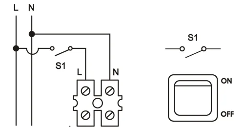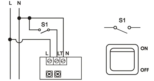 Der Außenleiter ist mit dem Lichtschalter oder einem separaten Schalter verbunden. Das Gerät wird beim Schalten aktiviert (Ausnahme: wenn der Badezimmerlüfter mittels integrierter Sensoren gesteuert werden soll)