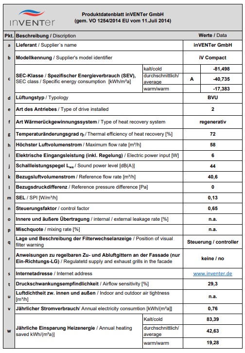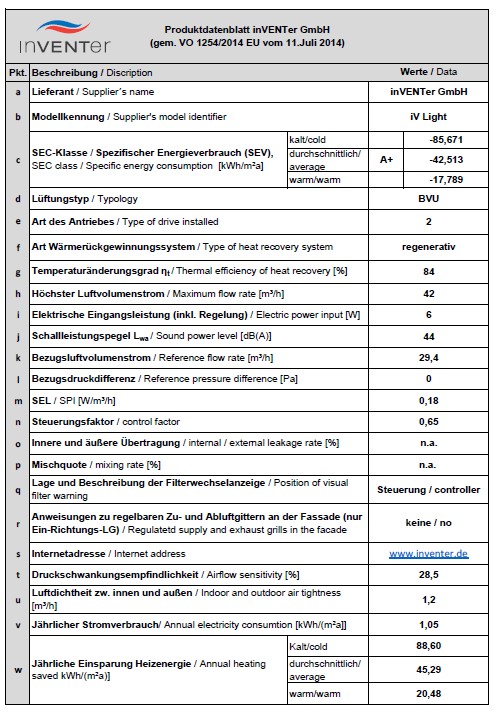 Die hochwertige Ventilatoreinheit der Anlage ist mit dem patentierten Leitwerk inVENTron ausgestattet, wodurch der Luftvolumenstrom begradigt und so effizient geleitet wird. So wird die Luftleistung effektiv erhöht, sodass es der iV14 Zero bei einem 200 mm Lüftungskanal (bei 220mm Bohrung) auf einen Luftvolumenstrom von 29 m3/h im Reversierbetrieb bringt. Die inVENTron- Technologie ist eine absolute Neuerung am Lüftungsmarkt und ein Beispiel für die Innovationsstärke von InVENTer. Seit der Markteinführung des Funkreglers easyConnect kann der iV14 Zero sowohl kabelgebunden, als auch als Funkvariante verbaut werden