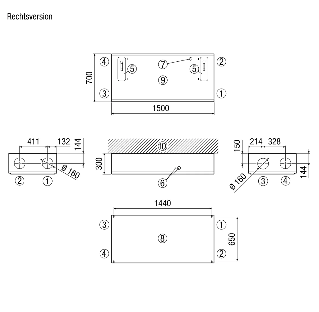 - ISO Coarse 80 % (G4) Filter in der Abluft und ISO ePM1 60 % (F7) Pollenfilter in der Außenluft