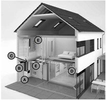 - Zuluftventilen und/oder -gittern im Wohnzimmer und in den Schlafzimmern (D)